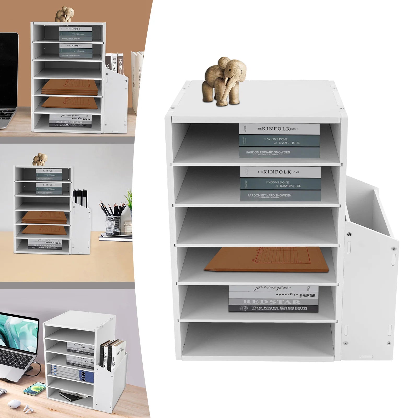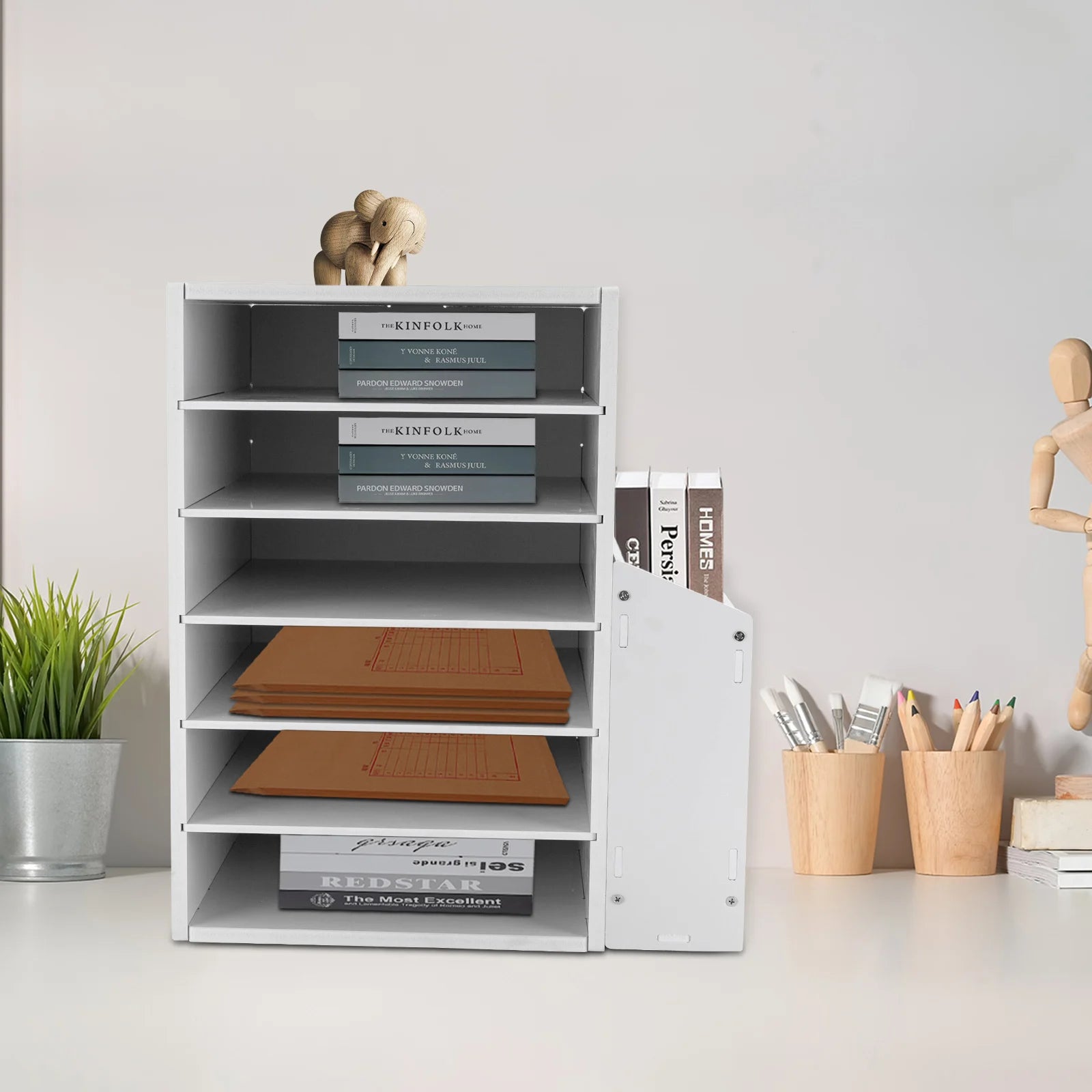 10*11.8*16.1in 6-Tier Desktop Organizer with Side Storage Cabinet File Sorter Holder for Home Office White