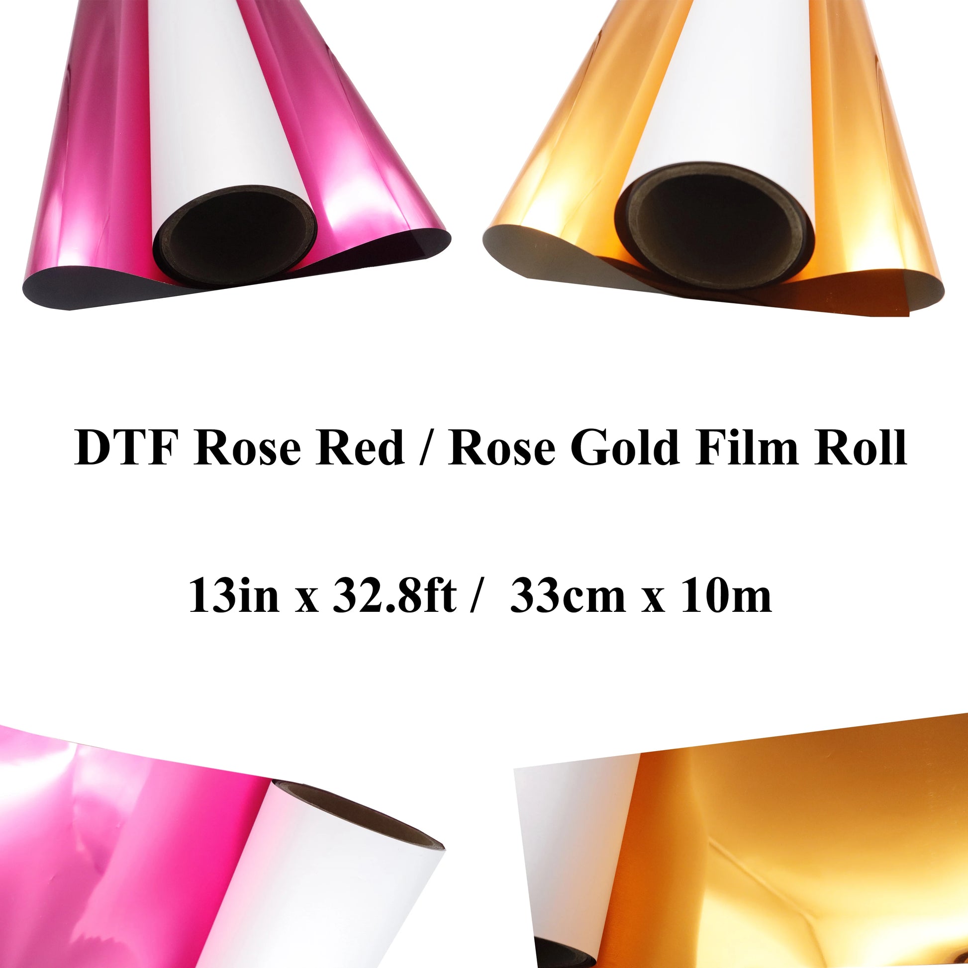 13in x 32.8ft / 33cm x 10m DTF Rose Gold / Rose Red Cold Peel Metallic Foil Transfer Printing