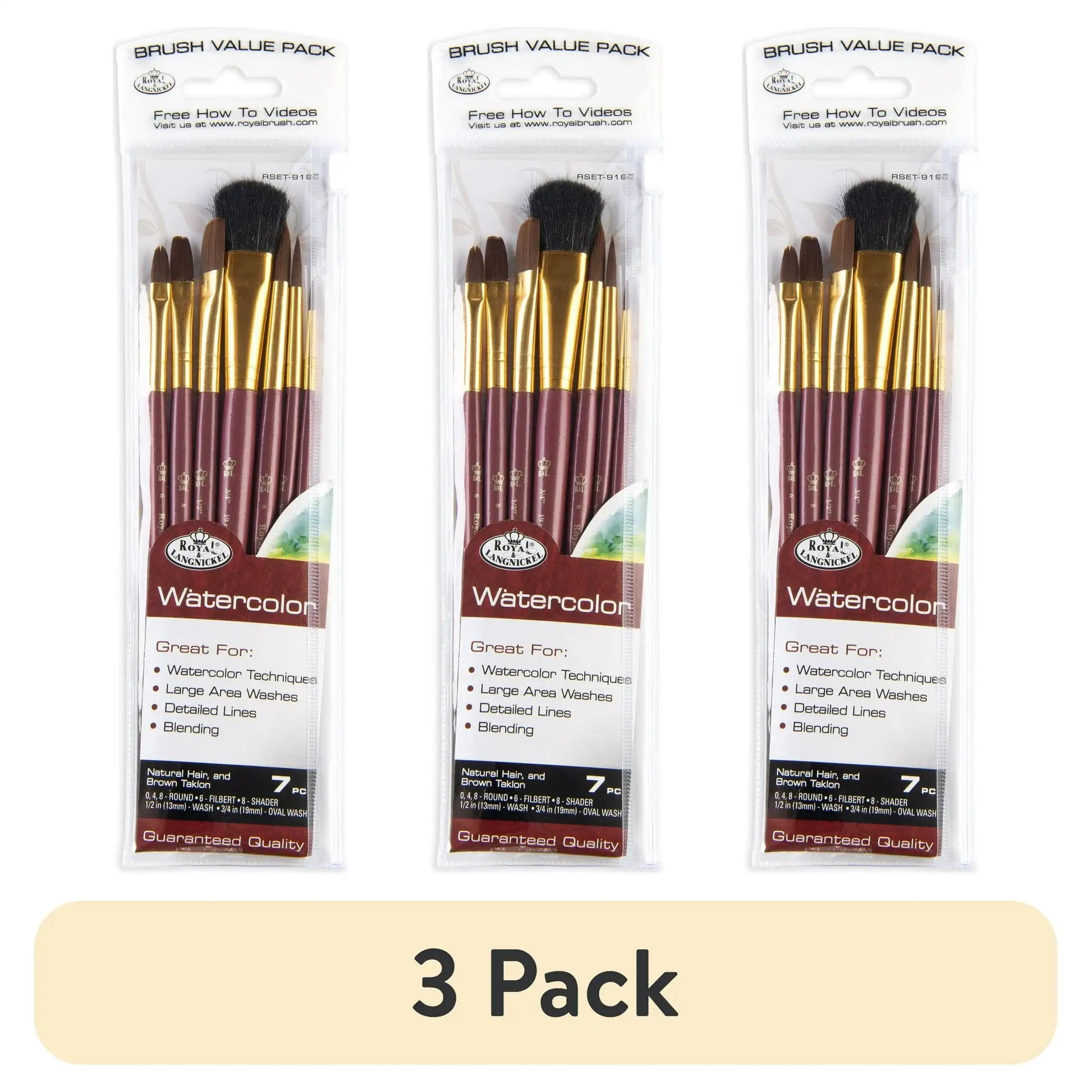 (3 pack) Royal & Langnickel - 7pc Brown Talkon Watercolor Artist Paint Brush Set