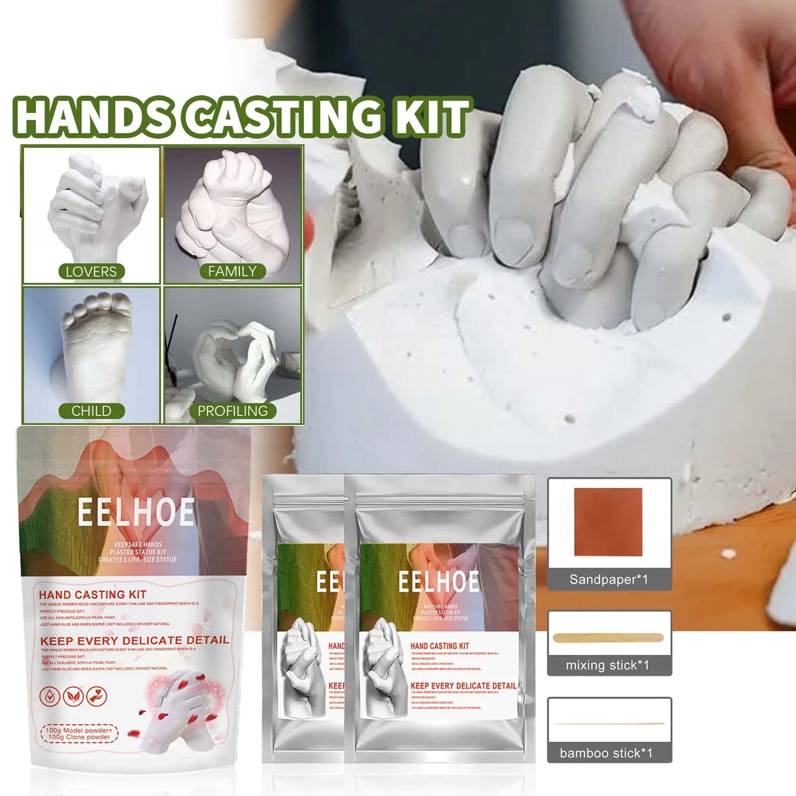 3D Hands Casting Kit DIY Hand Mold Kit with Bucket Powder Sandpaper Stick Preserve Memories Sculpture for Couples Families