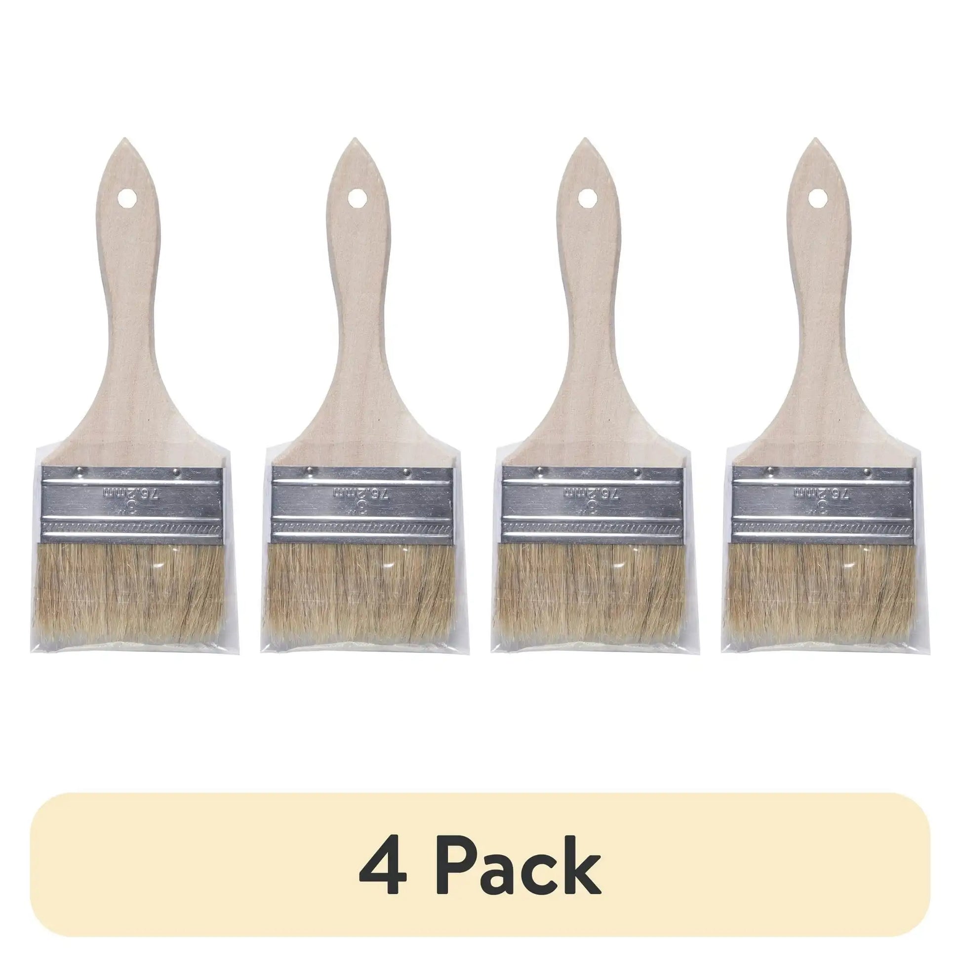 (4 pack) Unbranded Natural Bristle Flat 3-in. Chip Paint Brush for Crafts, Paint, Resin and Glue projects