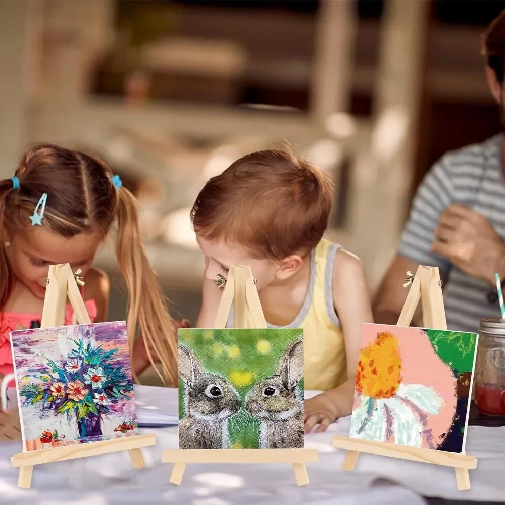 4 packs of 9-inch wooden easels, easel holders for painting canvases, arts and crafts painting party easels