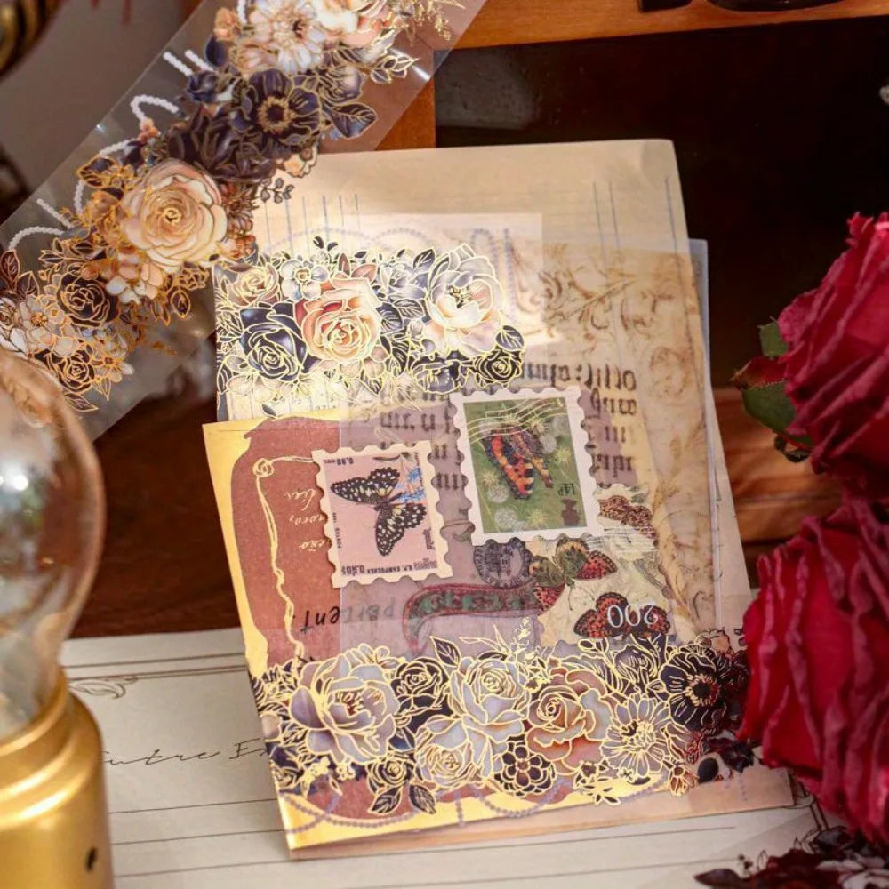4 Rolls Washi Tape Set, Vintage Floral Gold Foil Deco Tape,