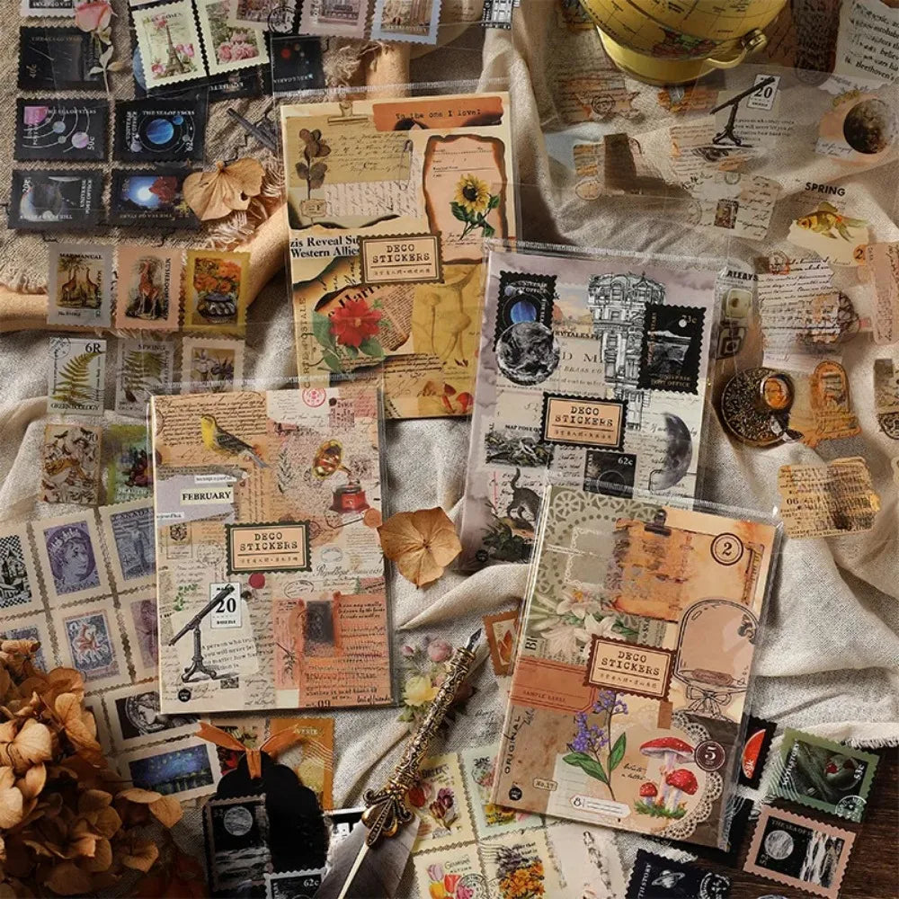 4 Styles 80pcs PET Sticker Book, Floating Clouds Over the World Vintage Aesthetic Decals for Journaling, Scrapbooking DIY Crafts
