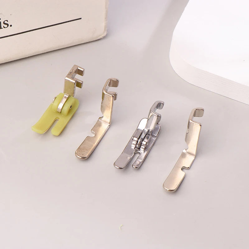 4Pcs Old Sewing Machine Zipper Presser Foot Set (Iron Presser Foot, Plastic Presser Foot, Left Hole And Right Hole Single Side)