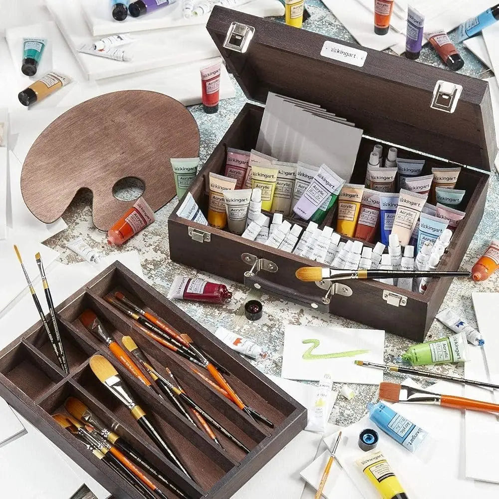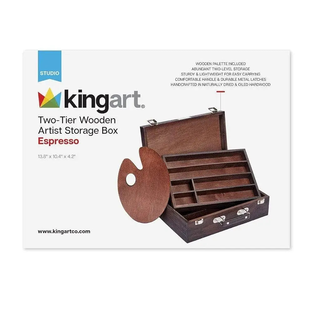720 Wood Art Storage Box With Espresso Stain, 2-Tier Wood Case With 10 Dividers, Holds Markers, Paint, Brushes, Pencils, And