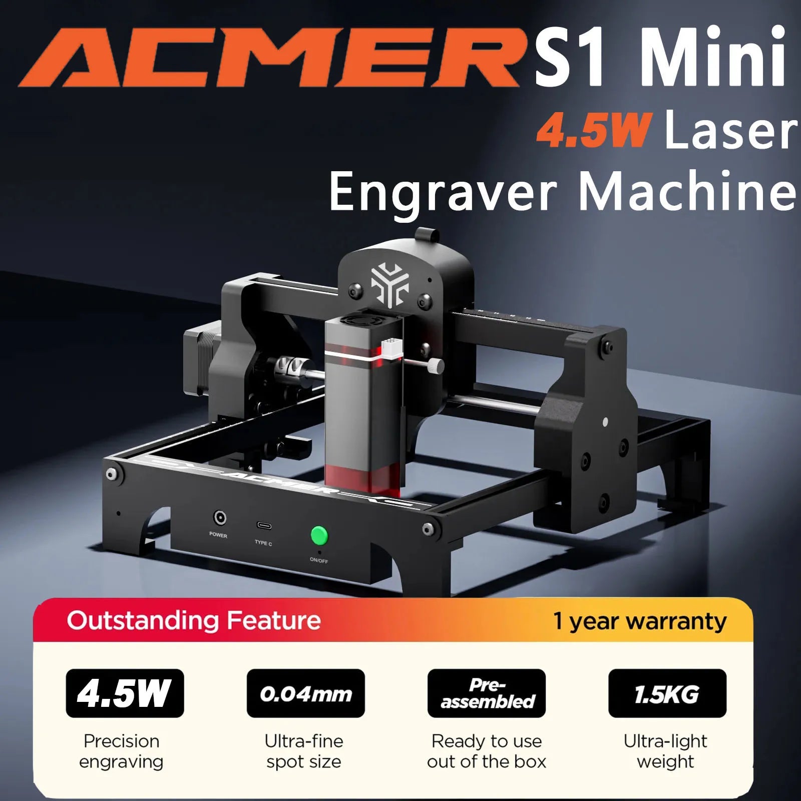 ACMER 4.5W Mini Portable Laser Engraver Logo DIY Laser Engraving Machine CNC Laser Cutter Pre-assembled For Wood tag CNC Machine