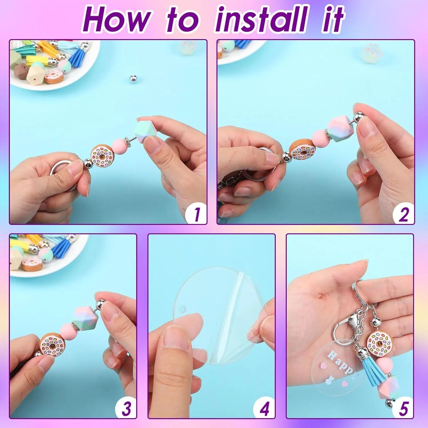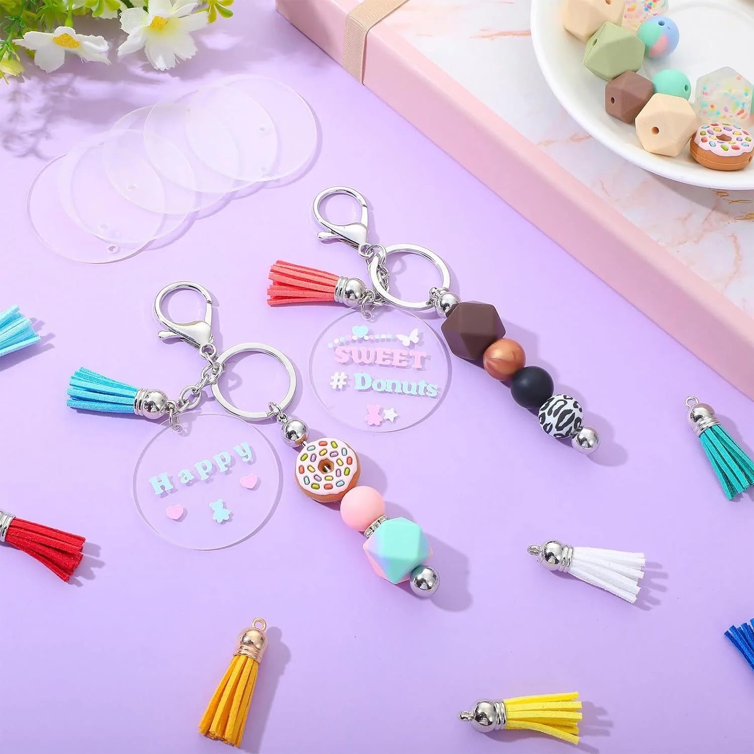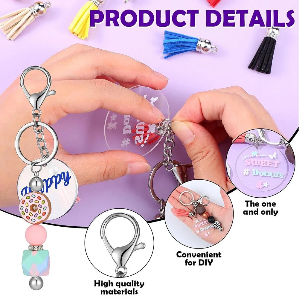 Beaded Keychain Bars, including silver Blanks Bead keychain and Colorful Leather Keychain Tassels
