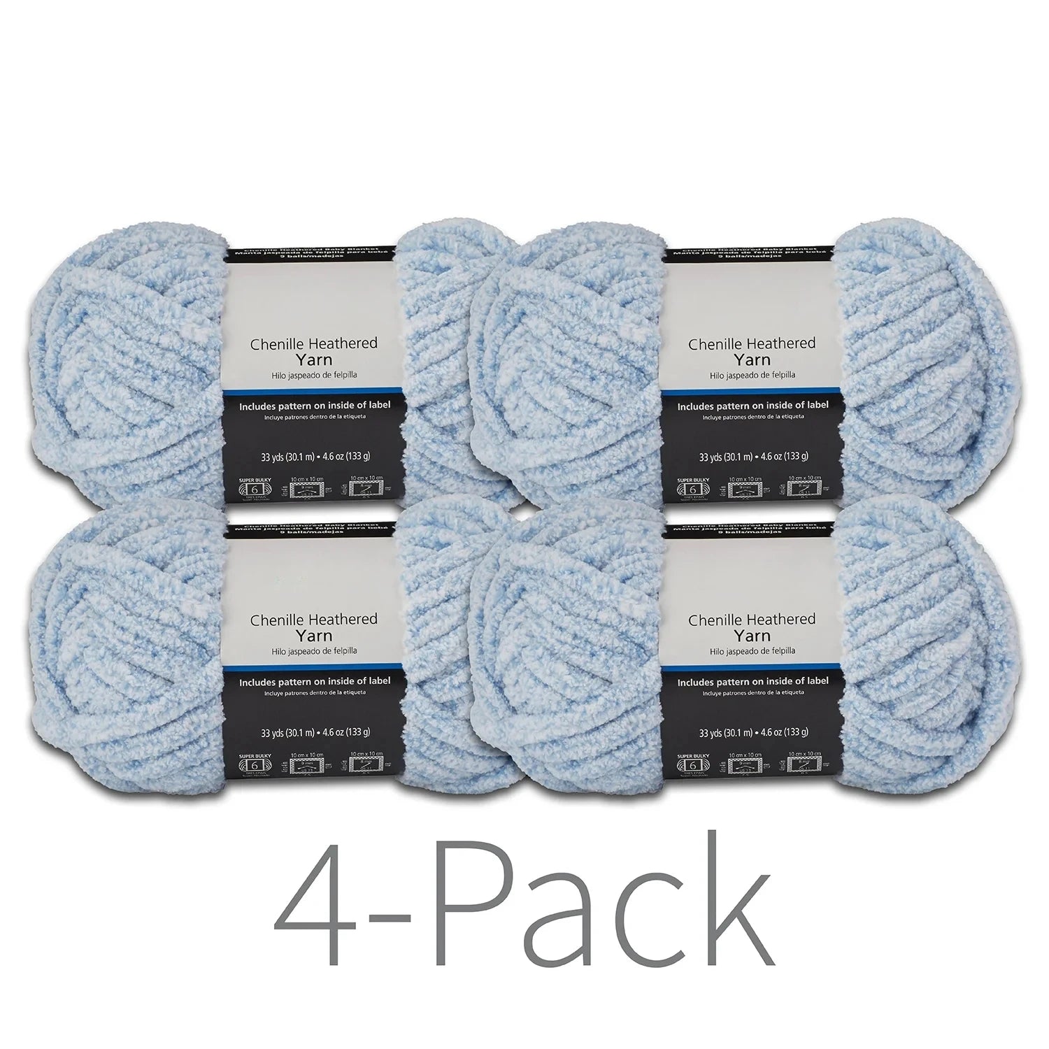 Chenille Heathered Yarn, 33 yd, Blue Shell, Super Bulky, Pack of 4, New