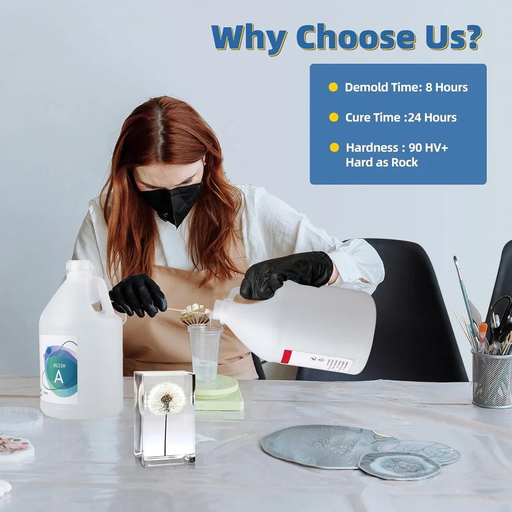 Epoxy Resin Kit 1 Gallon Crystal Clear Art Coating Jewelry DIY River Table Countertop Non Toxic Self Leveling UV Resistant