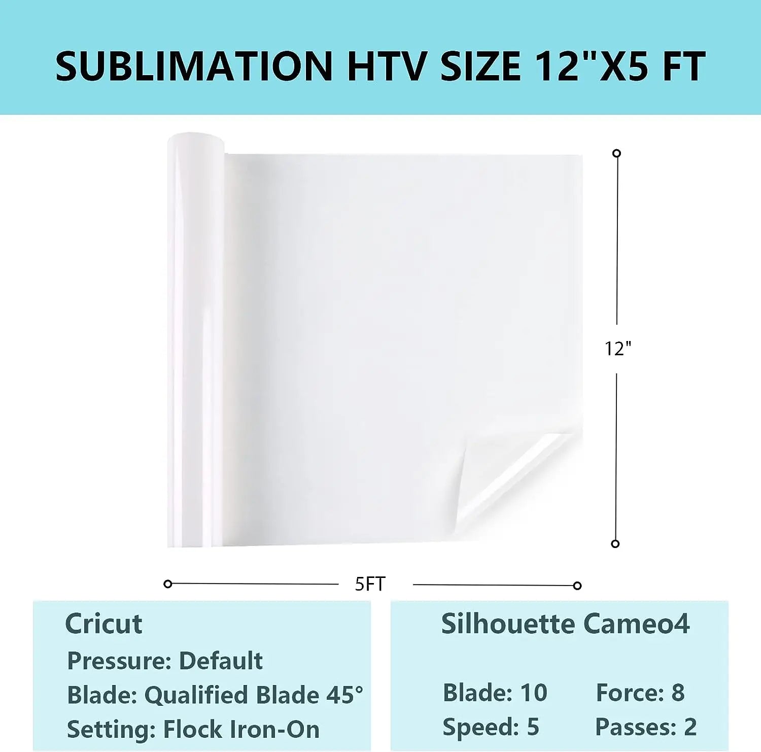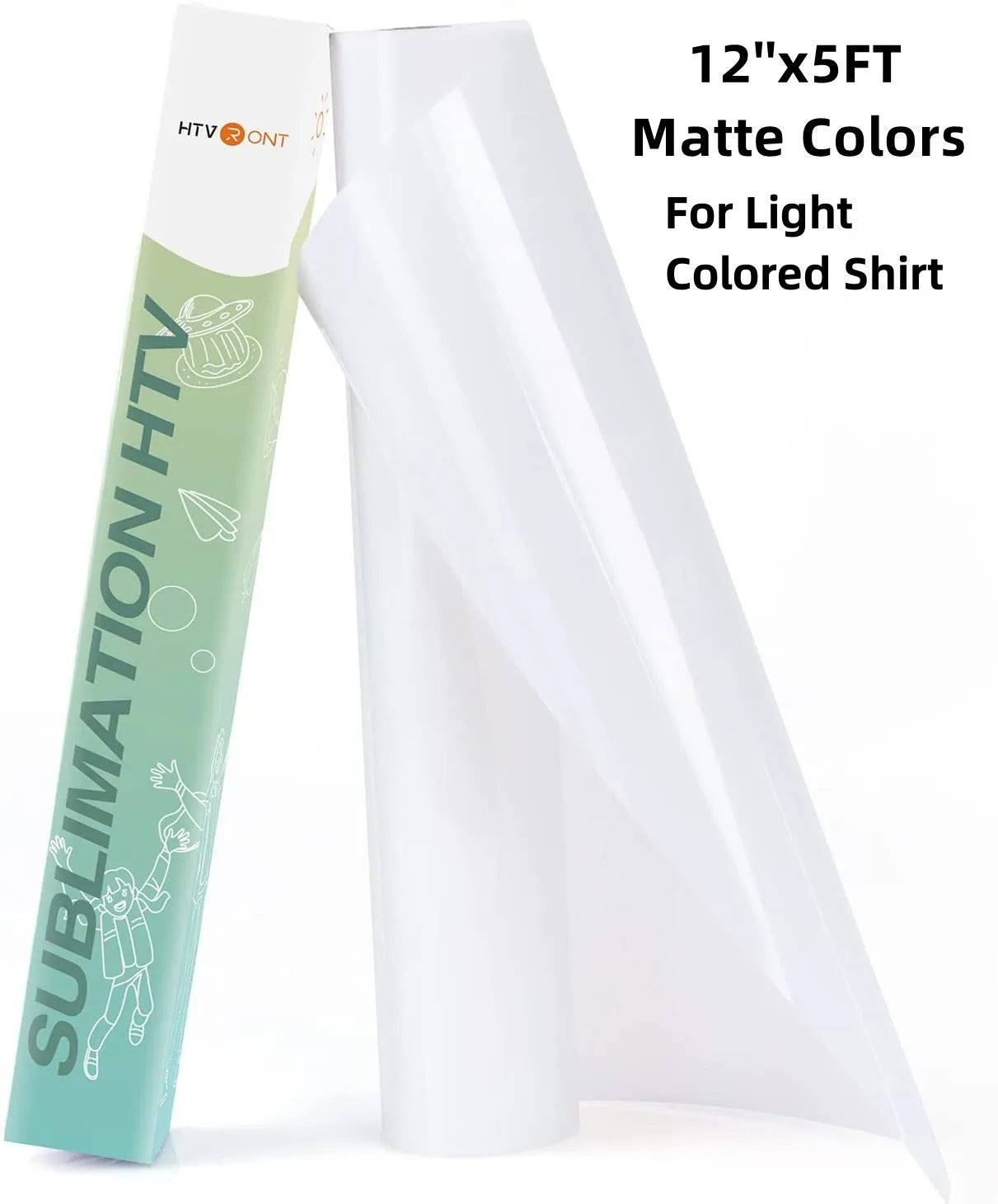 HTVRONT 12"X5FT Vinyl for Dark/Light Colored Shirts Dye Sub Heat Transfer Vinyl for Sublimation Cotton Fabric