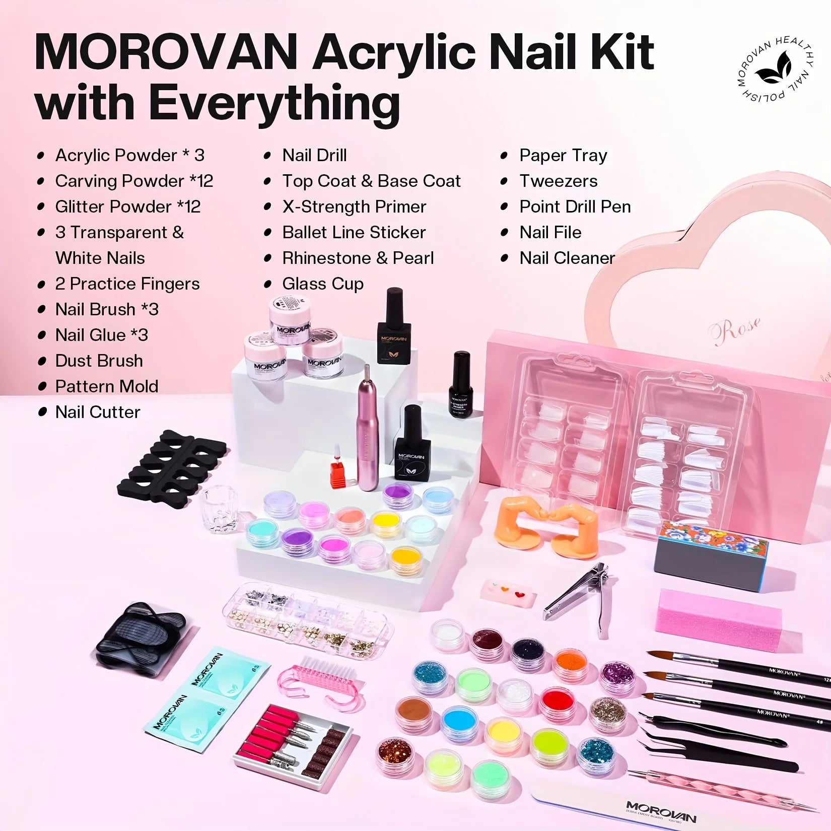 Morovan Professional Beginner Acrylic Nail Starter Kit, Convenient All-In-One Kit For Home Salon,