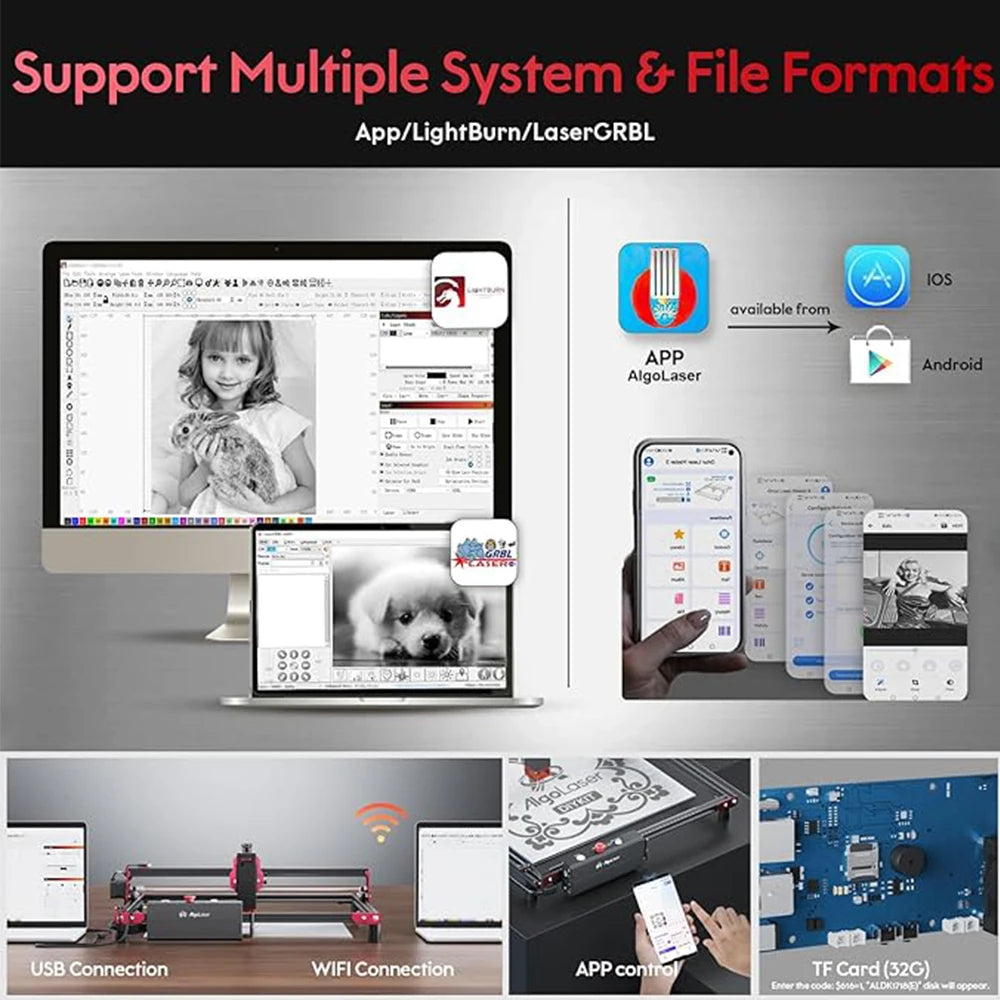 NEW Algo Laser High Power Mini Laser Engraver 40x40CM Carving Area DIY Laser Engraver Metal Cutting CNC Laser with App Control