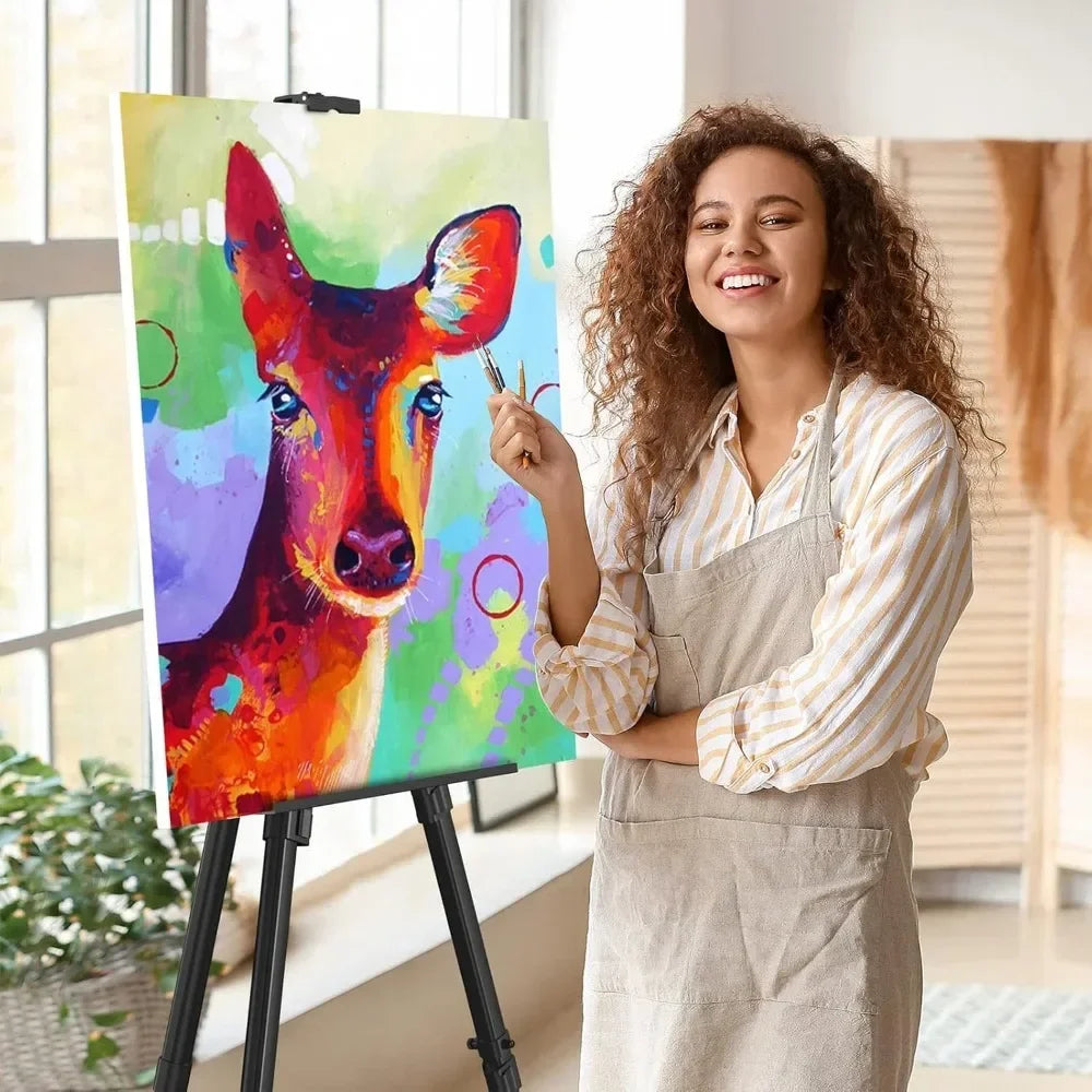 Portable adjustable aluminum metal tripod display easels ranging in height from 17 to 66 inches for tabletop/floor painting