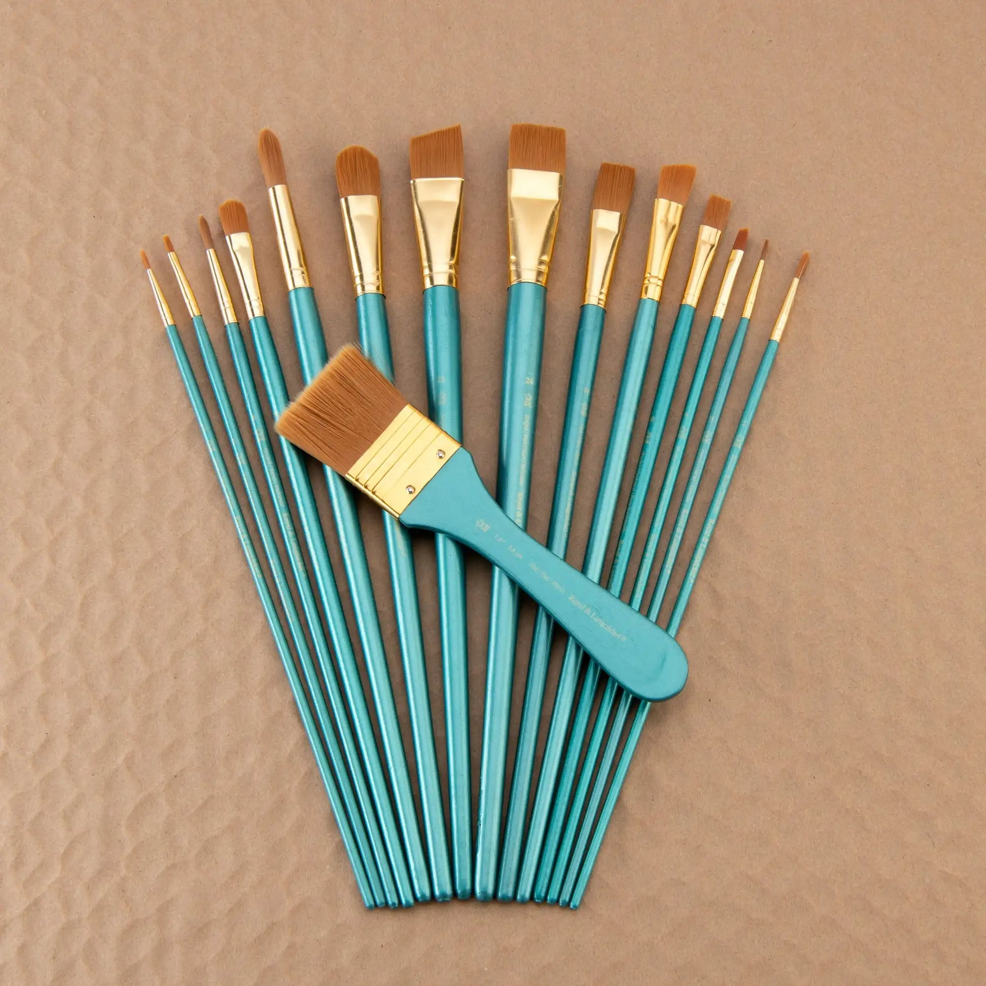 Royal & Langnickel - 15pc Long Handle, Brown Taklon All Media Paint Brush Set