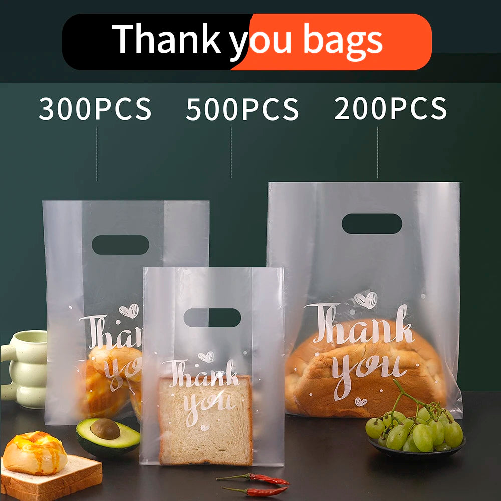S:500/M:300/L:200Pcs Thank You Gift Bags - Perfect For Bread, Candy, Snacks, And Desserts, Clothes- Plastic Carrier Bags packing