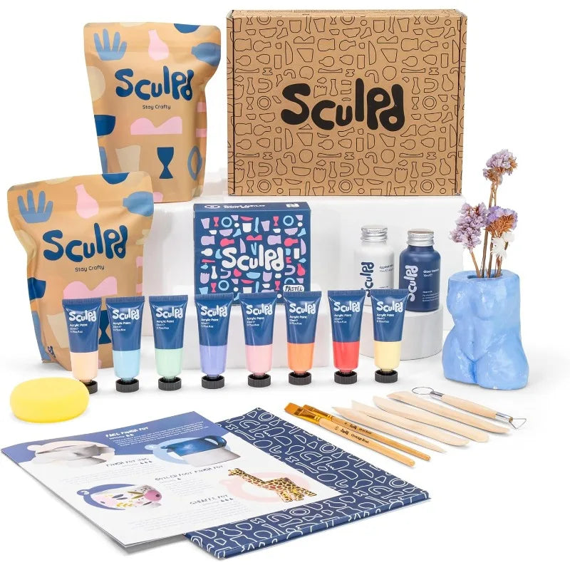 Sculpd - The Original Pottery Starter Kit - Complete Air Dry Clay + Painting Beginner Set for 2 Adults: Includes Sculpting Tools