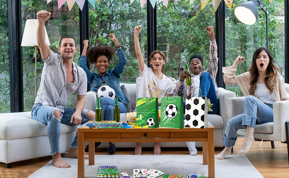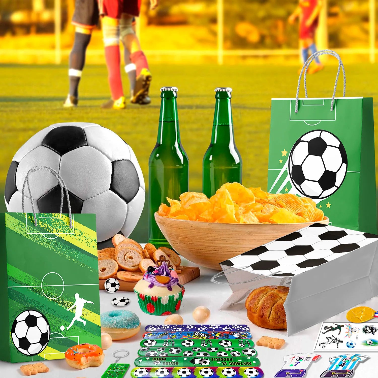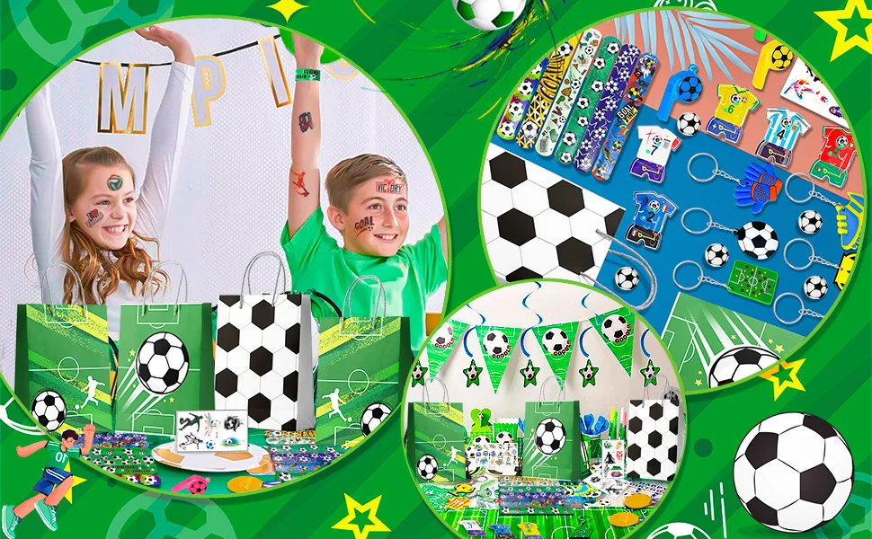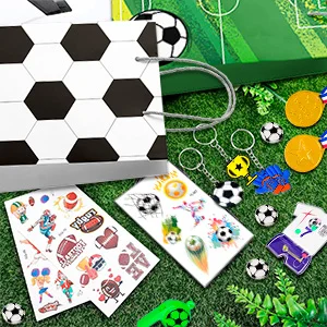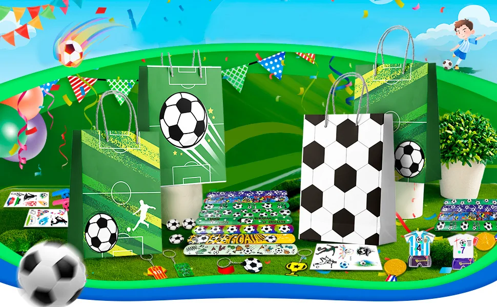Our soccer goodie bag favors set not only includes soccer gift bags, soccer theme stickers, but also soccer keychains party favors, mini soccer ball eraser etc, so you don’t need to spend too much time looking for the right soccer favor.