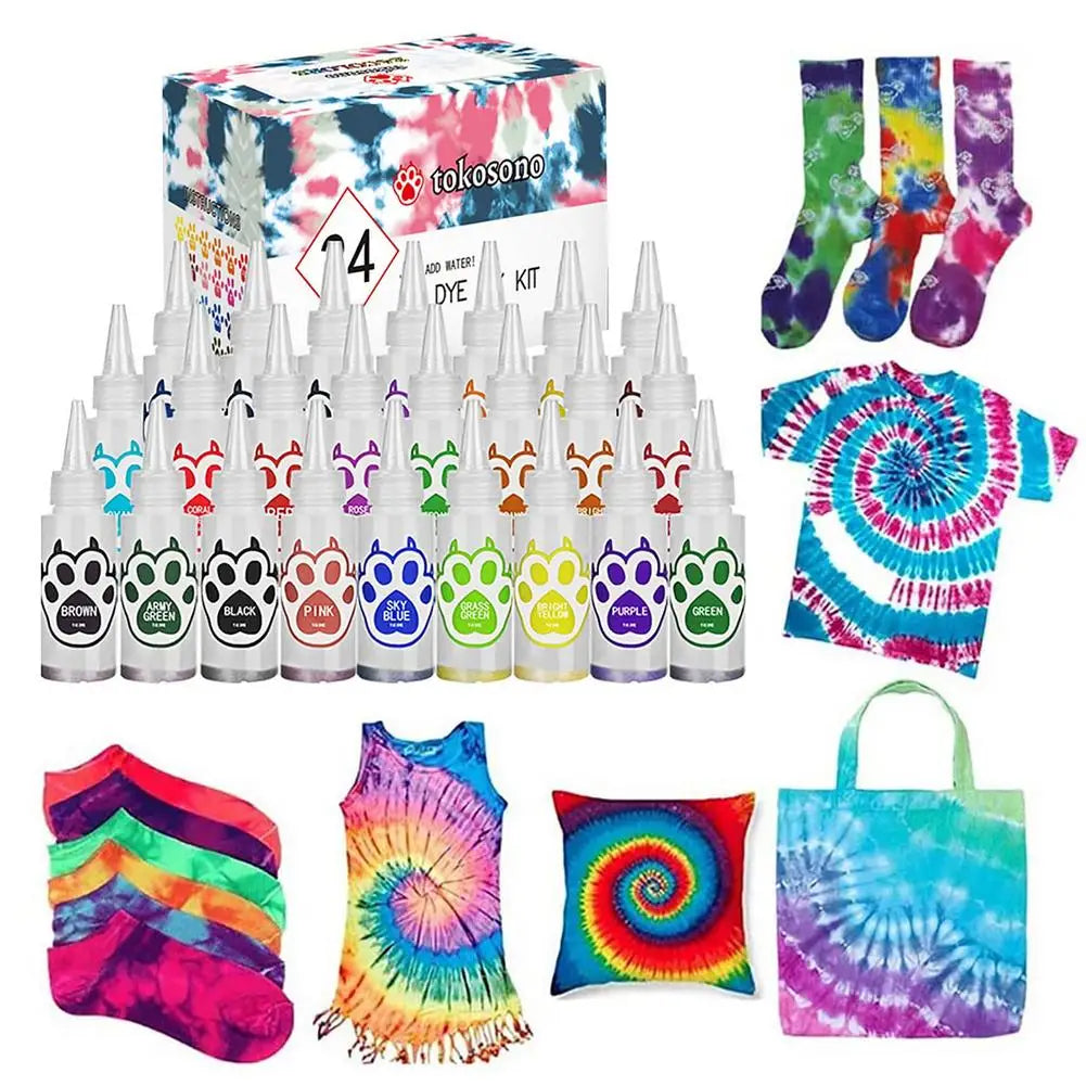 Tie Dye Kit 24 Colors DIY Garment Graffiti Fabric Textile Paint Rainbow Pigment Fabric Clothes Tie Dye Set