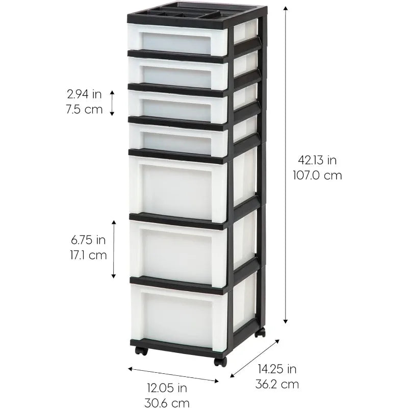 USA Plastic Drawer Storage Organizer Rolling Cart, with Wheels Casters, for Classroom Art Craft Supplies Dresser Closet