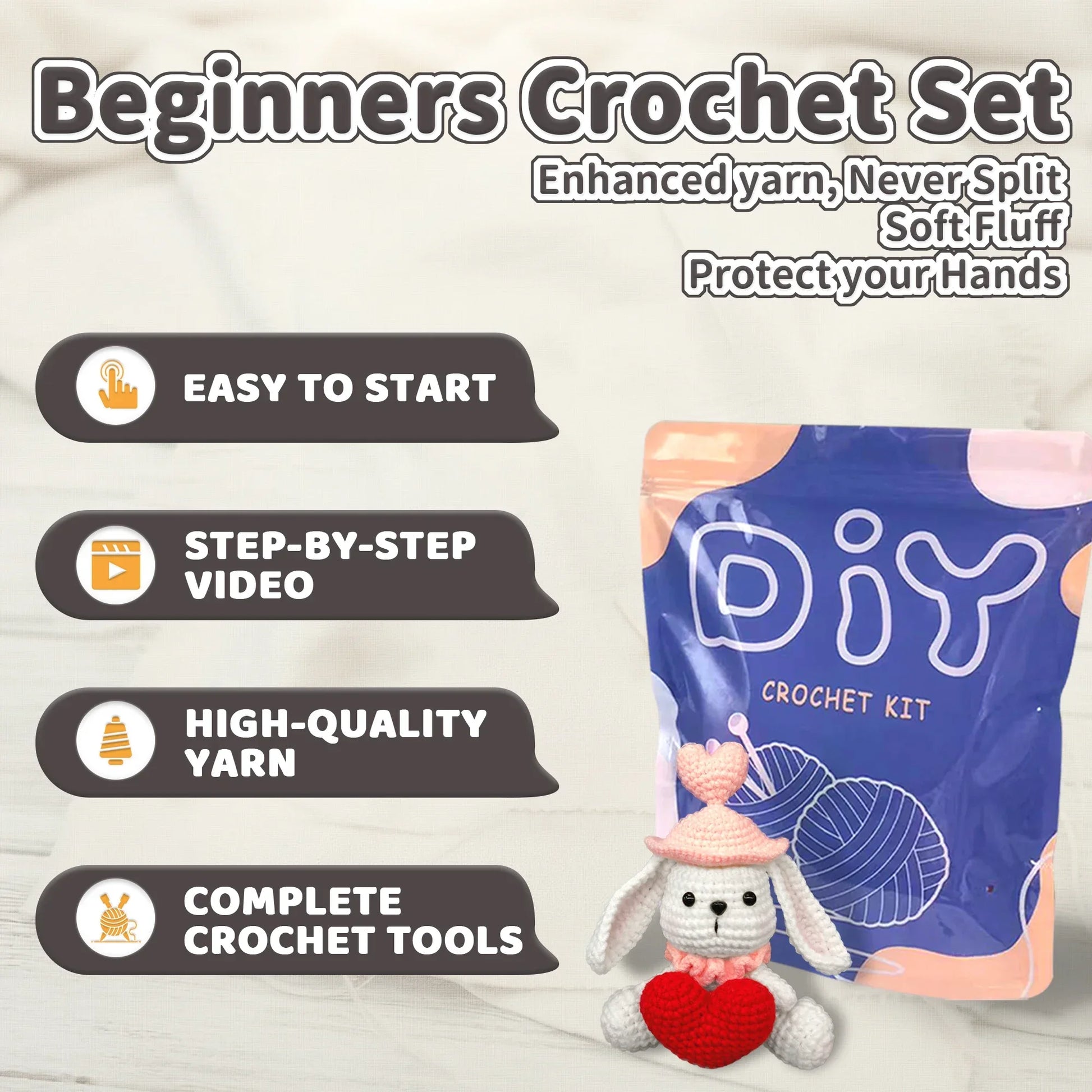 The kit includes an easy-to-use tool set, allowing you to start your crochet journey without any hassle.